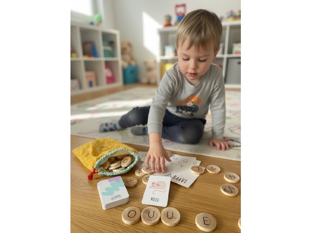 Děti si samy lepí písmenka na dřevěná kolečka, čímž rozvíjejí jemnou motoriku a kreativitu. Ideální pro školky i domácnosti, naše abeceda promění každou cestu nebo odpoledne v příležitost k objevování.
