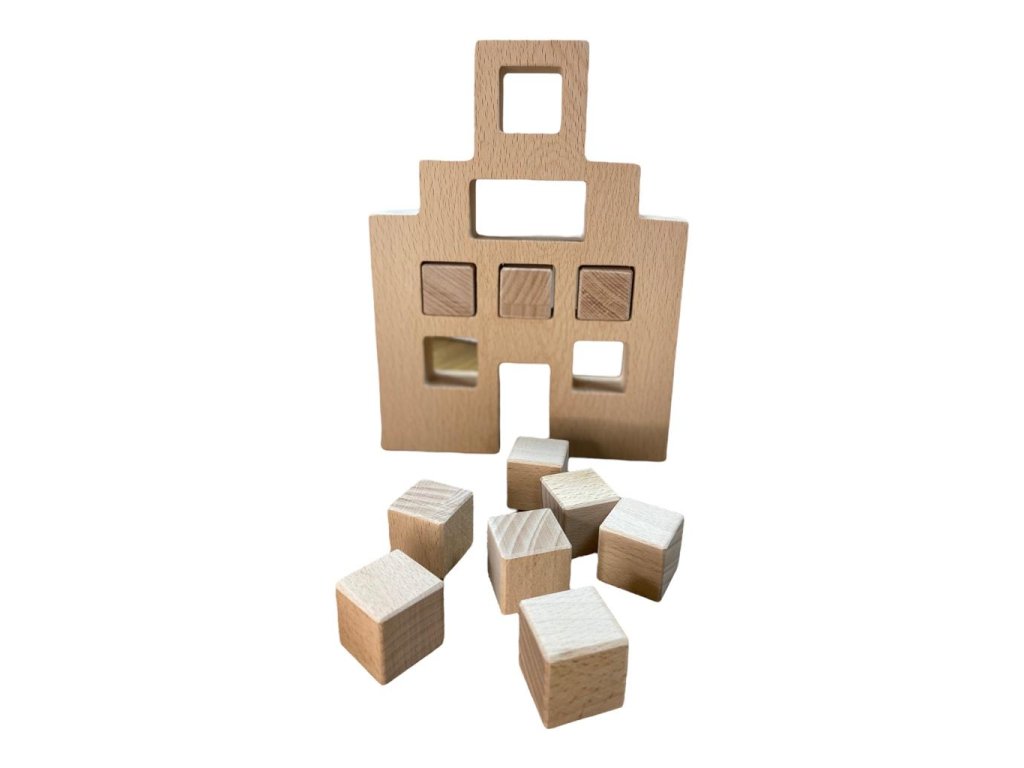 Otvory oken každého domečku jsou přesně tak velké, aby do něj děti mohly vkládat kostky o rozměrech 25x25 mm, což podporuje jemnou motoriku a koordinaci. Nad to se děti díky průsvitným křišťálovým kostkám mohou učit barvy a kombinace barev v návaznosti na průsvit světla, což je výjimečný způsob, jak rozvíjet jejich kreativitu a smysl pro detail. To vše ve smyslu sensory play, což je způsob hry, který podporuje dětské smysly, emoční vývoj a kognitivní růst.