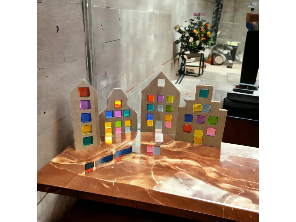Popuste uzdu nejen dětské fantazii s našimi Dřevěnými vkládácími domečky, které kombinují krásu přírodního dřeva s barevnými, křišťálovými, kostkami z epoxidové pryskyřice nebo z kvalitního dřeva.