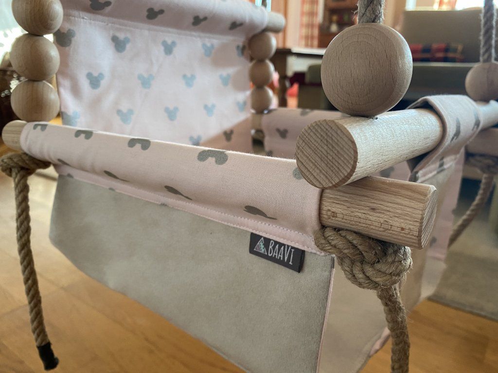 - The fabric part of the BaaVi SWING swing can be washed in an automatic washing machine at 40 degrees, we recommend ironing it over a thin cloth or tissue paper at a low temperature.