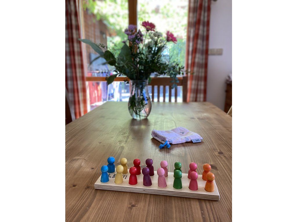 The simplicity of shapes and the naturalness of materials are important so that the child is not too distracted while learning the colors.