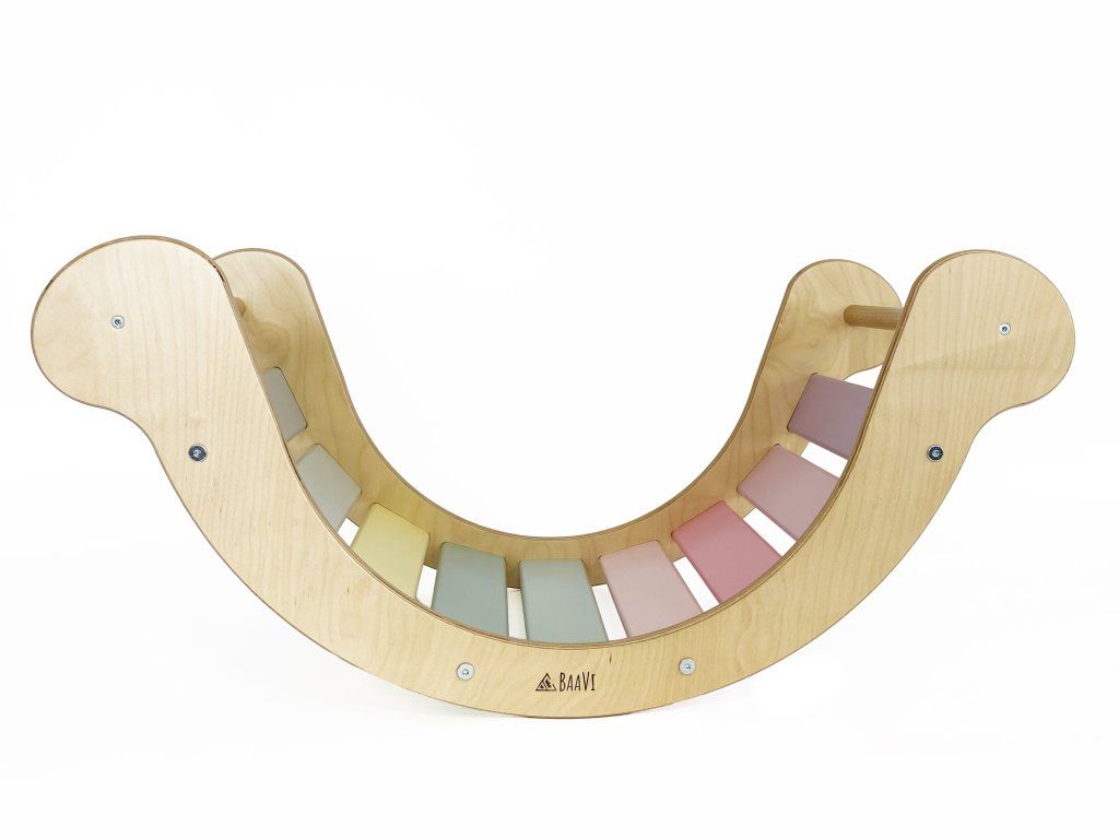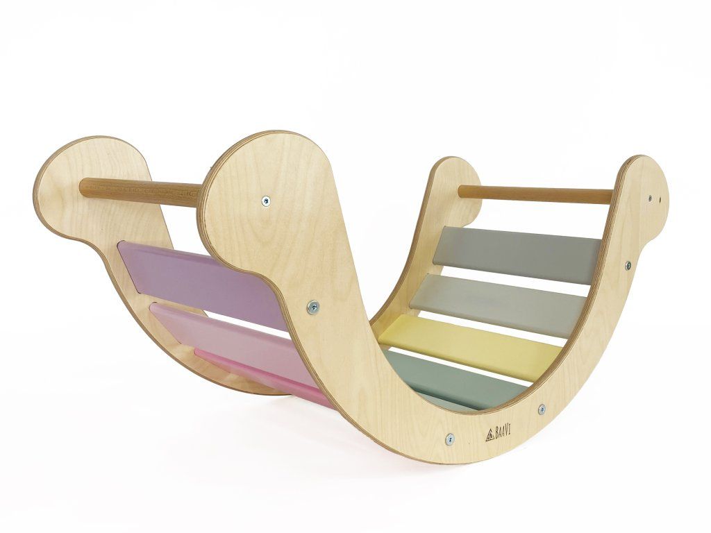 The Montessori swing Monte naturally and effectively develops not only the gross motor skills of our children, but also, thanks to its multifunctional use, children's creativity, independence and cooperation. Children will have a lot of fun with it not only as a swing, but also as a climbing frame, a slide, etc. and they will certainly discover many other functions. The Montessori swing Monte is equipped with handles that are comfortable for even small children's hands, thus increasing the safety of the swing. Thanks to its simple, tasteful design, the Monte swing will also become a lovely decoration in your interior.