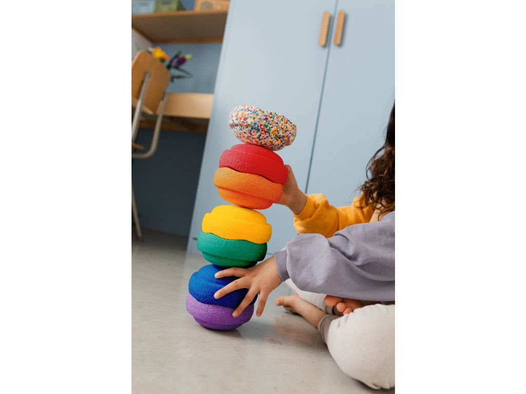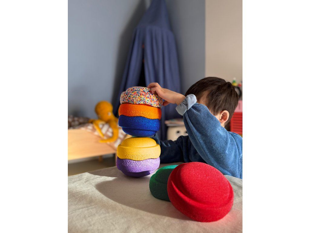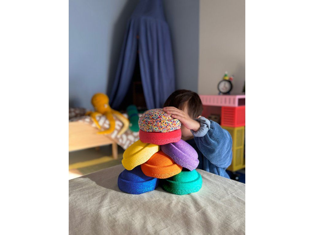 Stapelstein balancing stones are mainly a great tool for exercise, even in the mini version. They develop fine and gross motor skills, children's imagination, activate the deep stabilization system and are beneficial for the proper development of the foot. All this safely and playfully.