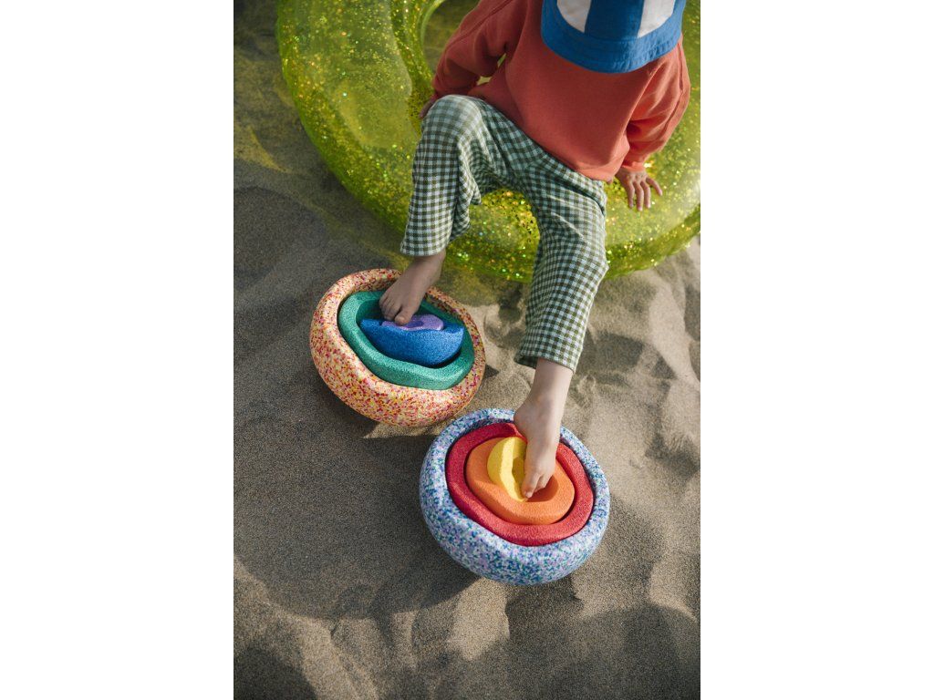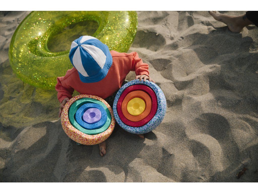 Whether you are in the garden, in the pool, by the lake, by the sea, or simply at home, be sure that with this limited summer edition of Stapelstein balancing stones (Stapelstein summer rainbow set classic) you will create unforgettable summer memories.