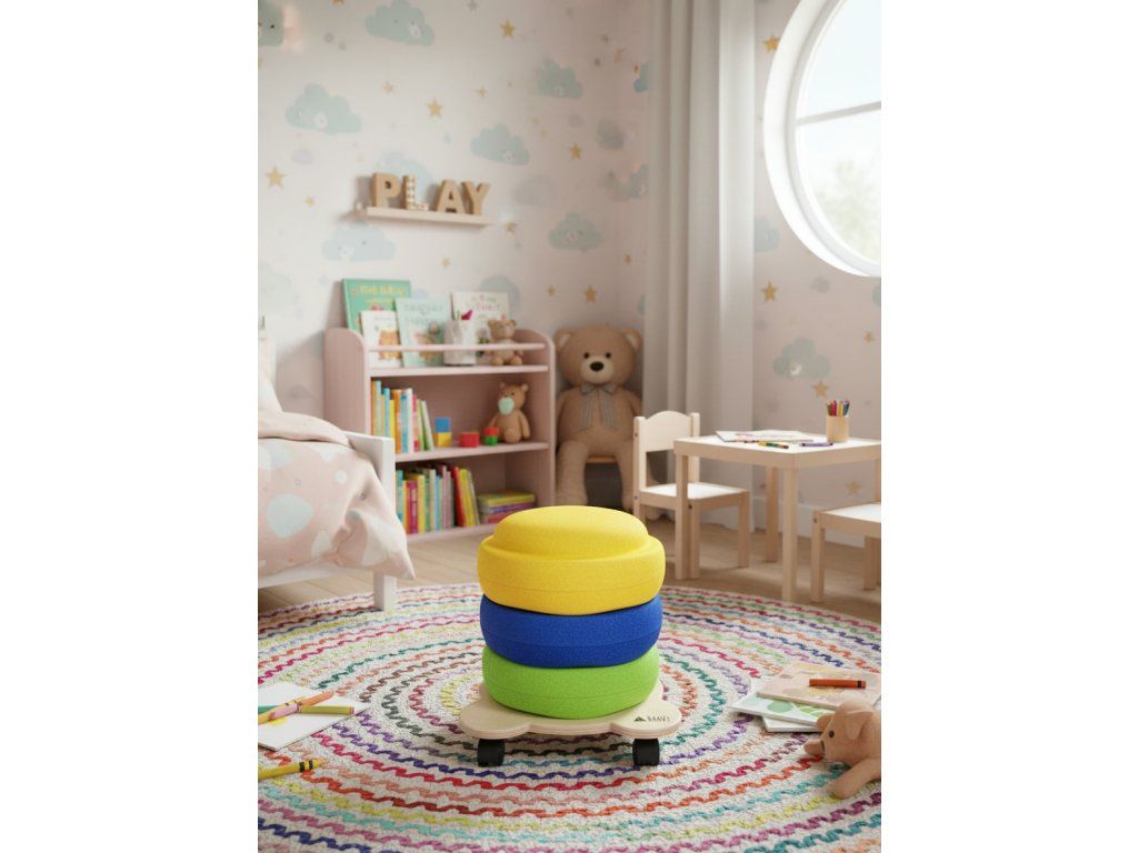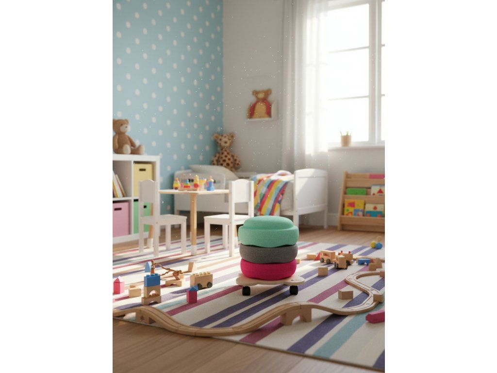 Thanks to this wooden chassis on wheels, you can easily move a large number of Stapelsteins at once.